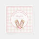 Some Bunny is turning one Birthday girl's party napkins. Lovely typography in pastel pink. Adorable watercolor bunny ears with pink wildflowers on a pastel pink gingham background. Easy personalise your special Birthday girl's name.