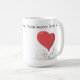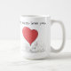 Coffee mug with a big red heart between a pen and ink illustration of two sweet, adorable bunnies. Text reads "Some bunny loves you." This design was created by artist Leah Wiedemer. Her animal illustrations are reminiscent of the famous Peter Rabbit illustrations by the wonderful Beatrix Potter.
