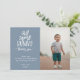 Cute "some Bunny" thank you photo card, in dusty blue. White typography with bunny ear accent and hand-drawn basketweave style pattern backing.