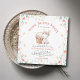Transport your guests to a world of whimsy with an enchanting illustration featuring a precious bunny wearing a botanical wreath, nestled beside a picnic basket brimming with wildflowers. Set within a square frame embellished with more delicate, stylised wildflowers, this baby girl shower invitation is a perfect fit for a springtime celebration, Easter happiness, a summer garden fête, or a charming picnic-themed baby shower.