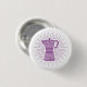 This retro style graphic pinback button says, "Some days you make the espresso and some days the espresso makes you". against the backdrop of a la Moka Espresso pot and retro style starburst graphic.