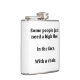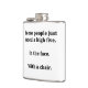 The flask itself is fine. It’s a cheap flask, obviously bought in bulk, however am prepared to overlook that. Given that it is a personalized item, I would have liked to have seen gift boxing instead of the generic packaging. Terrible printing, and/or quality. It’s a cheap, tacky vinyl. It is not cut straight and is also applied in a way that it is overhanging the bottom, causing the glue to catch on items and it will eventually roll and tear, damaging the wrap.
