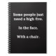 For the sarcasm lover in all of us. Check out this witty “Some People just need a high five. In the face. With a chair.” design on apparel, mugs, mousepads, buttons, and other unique gifts.