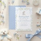 Celebrate your little girl with this "Somebunny Sweet" 1st birthday invitation. Features a delicate watercolor bunny with a blue gingham bow, surrounded by soft spring florals and elegant furry-textured typography. Perfect for a garden-themed or woodland spring party.