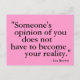 Someone's opinion of you does not have to become your reality. -Les Brown