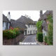 Village scene of thatched-roofed cottages, in Porlock, Exmoor National Park, Somerset, England, UK