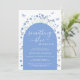 This charming floral bridal shower invitation is decorated with blue watercolor flowers, butterflies, and a blue arch.