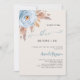 For a modern boho style bridal shower. A beige background. Decorated with a dusty blue rose, pampas grass. Personalise and add a name and party details.