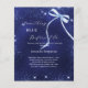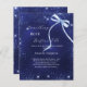 A navy blue background, decorated with blue faux glitter and a bow. The blue colour is uneven. Personalise and add a name and party details.