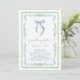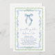 Chic bridal shower invitation featuring vintage-inspired green and blue watercolor frames, a blue coquette bow watercolor, "something blue before I do" showcased in a blue calligraphy script, and the name of the bride and shower details in classic serif typography.