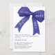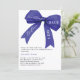 An elegant white background, decorated with large dark blue bow. Personalise and add a name and party details.