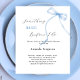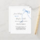 An elegant white background, decorated with blue bow. Personalise and add a name and party details.