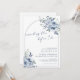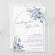 Elegant arch dusty blue bridal shower invitation "something blue before I do" featuring watercolor blue florals and leaves foliage design.