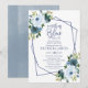 This elegant bridal shower suite features a dusty blue floral bouquet set within a modern gold geometric frame. This suite includes enclosure cards, signs, and personalised party supplies like napkins. If you need assistance with personalisation, including colour or wording changes, or if you notice a missing item, please don't hesitate to contact us. PLEASE NOTE: For assistance on orders, shipping, product information, etc., contact Zazzle Customer Care directly