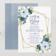 This elegant bridal shower suite features a dusty blue floral bouquet set within a modern gold geometric frame. This suite includes enclosure cards, signs, and personalised party supplies like napkins. If you need assistance with personalisation, including colour or wording changes, or if you notice a missing item, please don't hesitate to contact us. PLEASE NOTE: For assistance on orders, shipping, product information, etc., contact Zazzle Customer Care directly