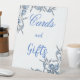 This chinoiserie-inspired design something blue before i do has a beautiful blue splash and botanical blooms. Personalise the cards and gifts sign using your information, and if you want to change the style and font of the text, click the "Click to customise further" button.
