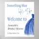 Elegant Something Blue themed Bridal SHower Welcome sign with Blue Dress and Calligraphy Script text quote.