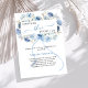 An elegant white background, decorated with watercolored blue flowers and a blue bow. Personalise and add a name and party details.