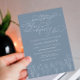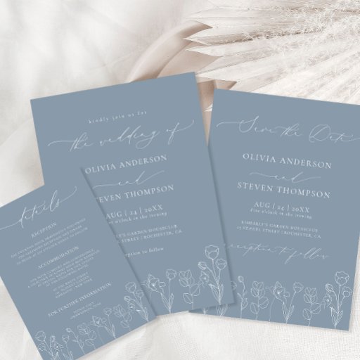 This Minimalist Floral "Something Blue Before I Do" Floral Bridal Shower Invitation design is a stunning embodiment of refined elegance and minimalist beauty. It exudes a sense of understated sophistication, making it a truly captivating choice for your bridal shower. The colour palette of this design features a dusty blue hue, which adds a touch of serenity and tranquillity. This soft and muted tone creates a sense of calmness, while simultaneously providing a modern twist on the traditional "something blue" theme. The incorporation of line art floral elements in complementary shades of white adds a touch of romance and femininity. The typography chosen for this invitation design is elegant and refined, featuring calligraphy that exudes a timeless appeal. The delicate and graceful strokes of the lettering enhance the overall sense of sophistication, while ensuring that the important details of the bridal shower are beautifully presented. The thoughtful arrangement of the text creates a harmonious balance between elegance and clarity, allowing the information to be easily read and understood. Matching items are available. See full collection here: https://www.zazzle.com/collections/dusty_blue_classic_minimalist_collection-119092113454390993
