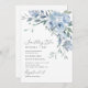 Invite friends and family to you or a loved one's bridal shower with this elegant invitation, featuring watercolor flowers and greenery in dusty blue colours.