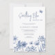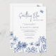 Elegant botanical soft dusty blue wildflowers and butterflies spring botanical bridal shower invitation in a pastel delicate colour palette with white.