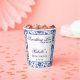 These floral-themed paper cups feature elegant blue flowers and butterflies, setting the perfect tone for a memorable Something Blue Before I Do bridal shower.