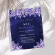 A navy blue background, the blue colour is uneven. Decorated with lavender borders and coloured faux glitter dust. Personalise and add a name and party details. Text: Something blue befor I do.