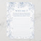 Something Blue Bridal Shower Guess Who Game Card