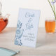 Celebrate love with this elegant blue floral bridal shower table sign featuring classic chinoiserie-inspired artwork and romantic script fonts. The phrase “Something blue before ‘I do’” sets the tone for a charming pre-wedding gathering, perfect for honouring the bride-to-be.