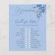 Elegant Calligraphy Script Something Blue Bridal Shower Themed Wedding Would she Rather Funny Game with watercolor flowers. On the other side there are a glasses of champagne with a bouquet.