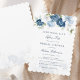 Customise this bridal shower invitation card by clicking the "Personalise" button above. The card features a modern elegant chic dusty blue flowers with white, light blue, and olive green bloom.