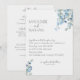 This wedding invitation from The Something Blue Floral Wedding Collection captures timeless elegance with soft blue florals and romantic script. Designed to set the tone for your celebration, it balances tradition and modern style, offering your guests a beautiful first glimpse of your special day. Perfect for couples seeking a fresh take on the classic “something blue.”