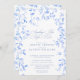 The "Something Blue Before I Do Floral Script Bridal Shower Invitation" brings together an exquisite blend of romantic elegance and modern sophistication. Set against a peaceful white backdrop, the soft blue watercolor florals delicately frame the text, creating an eye-catching design that evokes both luxury and refinement. The graceful script adds a touch of timeless charm, beautifully harmonising with the bold floral design, making this invitation ideal for a bride seeking an effortlessly chic bridal shower experience.