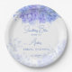 Something blue before i do bridal shower blue hydrangea botanical floral personalised monogram printed paper plates template, watercolor dusty blue flowers botanical paper plates table decor for garden themed bridal shower.