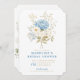 Something blue bridal shower invitation features blue hydrangeas and wildflowers.