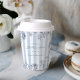Decorate the table of your "something blue" bridal shower with our custom paper cups featuring classic chambray stripes and navy floral line art.