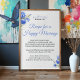 Elegant bridal shower gift poster featuring a modern “Recipe for a Happy Marriage” design in a soft blue iris floral style. Perfect as a Something Blue bridal shower gift or wedding keepsake, this wall art celebrates love, partnership, and a meaningful life together.