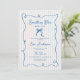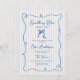 Celebrate the upcoming nuptials of your favourite bride-to-be in style with our quirky and whimsical bridal shower invitations! This invitation features a beautiful hand-drawn bow in a fun and playful style with a squiggly frame surrounding it on a striped background with soft blue vertical stripes. The casual, handwritten font perfectly captures the excitement and joy of the occasion.