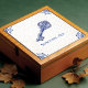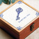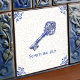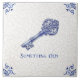 Celebrate timeless tradition with this “Something Old” ceramic tile featuring an ornate antique skeleton key illustrated in classic Delft blue. The artwork combines a detailed pen-ink sketch look with soft cobalt shading, framed by traditional Dutch corner scrollwork on an aged crackle-glaze background for an authentic vintage pottery vibe. A meaningful bridal shower or wedding keepsake, this tile makes a charming accent for a cottage kitchen backsplash, bathroom shelf display, entryway vignette, or gallery wall arrangement.