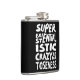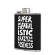 The flask itself is fine. It’s a cheap flask, obviously bought in bulk, however am prepared to overlook that. Given that it is a personalized item, I would have liked to have seen gift boxing instead of the generic packaging. Terrible printing, and/or quality. It’s a cheap, tacky vinyl. It is not cut straight and is also applied in a way that it is overhanging the bottom, causing the glue to catch on items and it will eventually roll and tear, damaging the wrap.