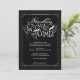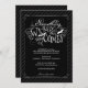 Intricate lettering proclaims, "Something WICKED this way COMES" on this original design by Kat Parrella. White typography and black on black style is accented with subtle diagonal tuxedo stripe background. Elegant, spooky and fun - an invitation they are sure to love.
