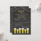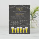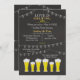 A trendy design featuring strung backyard lights and glasses of frothy beer against a black, chalkboard, background. Perfect for any outdoor, backyard, celebration. (VOS)