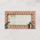 Eclectic & whimsical business card is edged in red circles with black dots and has a grunge centre for your business card information. At the bottom left... is that a fish! Yes it is, and on the right is a sexy lady with a Brooklyn postmark behind her. Sure to catch attention in the sea of business cards out there!