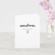 Imagine receiving a heartfelt 'get well' greeting card with a clean white background that immediately soothes you. In elegant black cursive font, the word 'sometimes' brings a touch of warmth and comfort to the centre of the card. Below it, a gentle reminder that 'THERE ARE NO WORDS' needed, softly written in small, thin black sans-serif font. And just when you think it can't get any sweeter, a heart in a cheerful shade of red graces the bottom centre, casting a subtle shadow that adds a touch of dimension. This card is like a virtual hug, sending all the healing vibes your way. ❤️🌟