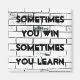 On a black and white brick wall is the inspirational quote "Sometimes you win, sometimes you learn".