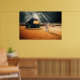 A surreal, thought-provoking scene depicting two human figures standing in a vast desert, facing a partially buried Earth under dramatic rays of light. This artwork explores themes of humanity, isolation, responsibility, and our fragile relationship with the planet. A cinematic blend of surrealism and science-fiction atmosphere, ideal for modern interiors, conceptual wall art, and collectors drawn to symbolic and futuristic visuals.