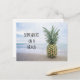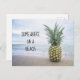 Photo of a Pineapple sitting on the beach with cute typography quote.