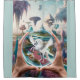 A pair of hands holds a transparent sphere containing a majestic, winged horse, with a fantastical landscape in the background featuring floating islands and abstract shapes. The scene exudes a surreal and dreamlike quality with vibrant colours and imaginative elements. Digital Art