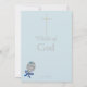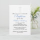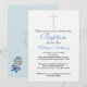Elegant Baptism Cross Son Invitations with simple hand-painted silver cross with gold accents on front and back of card. Fresh and crisp looking. Baptism and Child's Name is written in pretty blue script. Personalise with your Baby's First or First and Middle Name, Date of Baptism and details. Backside has light blue grey colour with the wording Child of God in silver text, with a silver baby rattle image with blue star and the look of blue beaded bow with Love written inside of rattle in white text. Original Graphic Artwork and Design by © 2018 TamiraZDesigns.