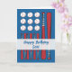 Celebrate your amazing older or adult son with this bold baseball-themed birthday card that combines all-star style with a hint of Americana. Featuring red baseball bats and white baseballs arranged against a blue woodgrain background, the card gives a subtle nod to the American flag. A sporty white banner highlights the message, “Happy Birthday Son,” with a strong, clean layout. Ideal for a son who grew up at the ballpark or still catches games, this card is a great pick for any age baseball-loving guy.